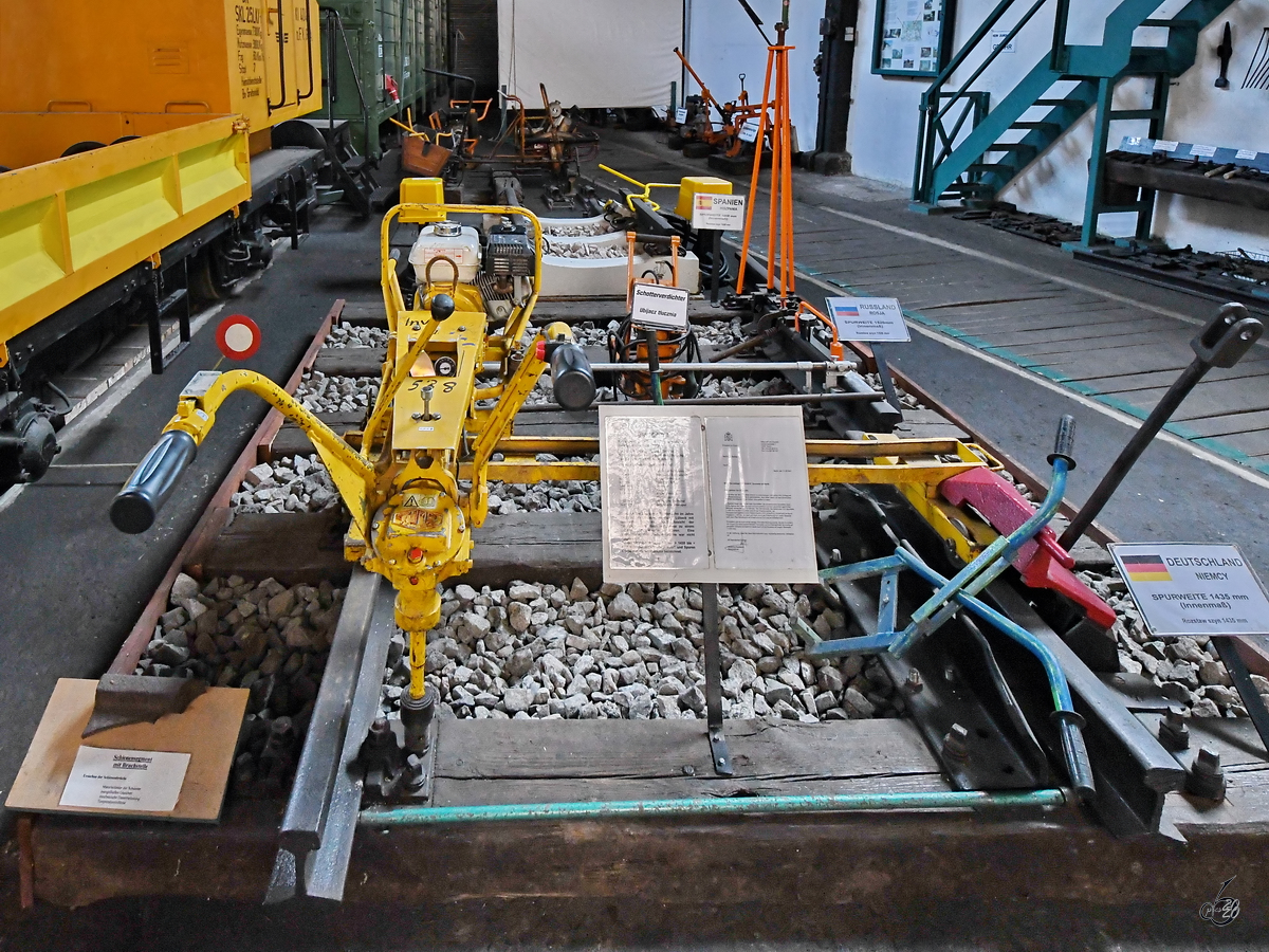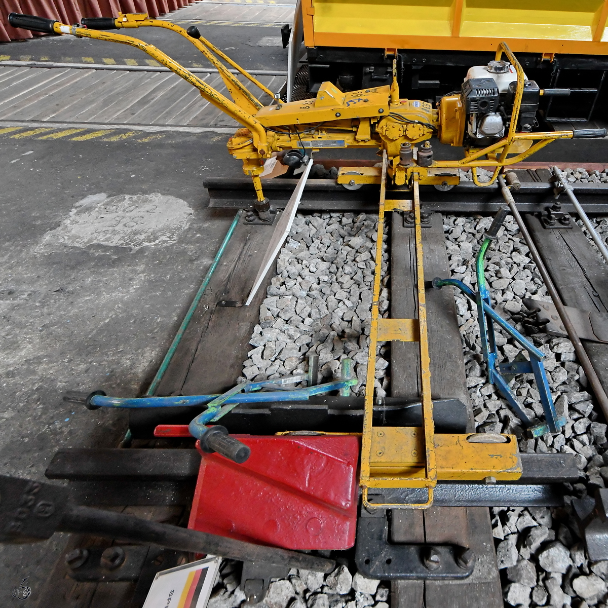 Ein Gleisschleifgerät (?) war Mitte Juni 2020 im Lokschuppen Pomerania Pasewalk zu sehen.