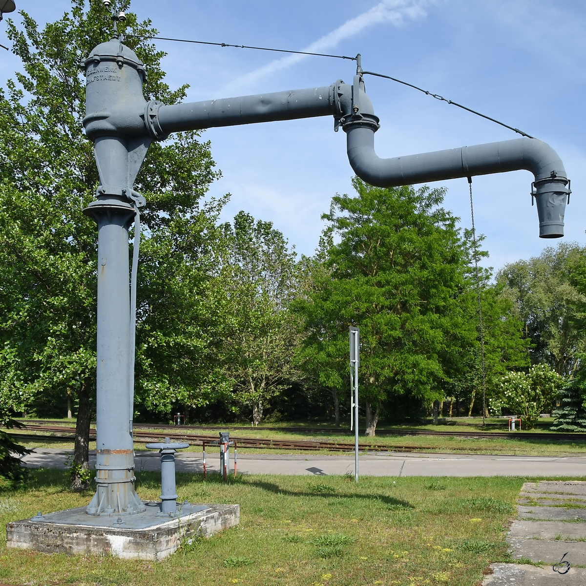 Ein Wasserkran war Mitte Juni 2020 etwas abseits vom Lokschuppen Pomerania in Pasewalk zu sehen.