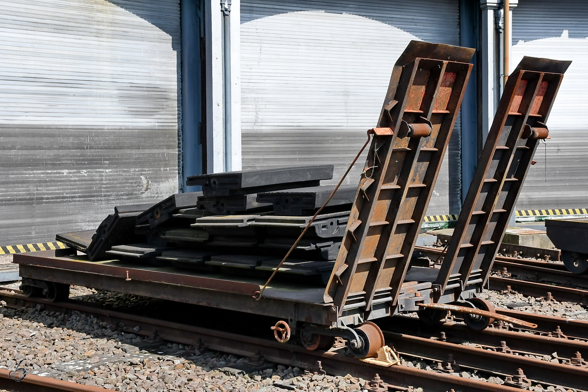 Eine Bahnbaulore stand Mitte Juni 2020 vor dem Lokschuppen Pomerania Pasewalk.