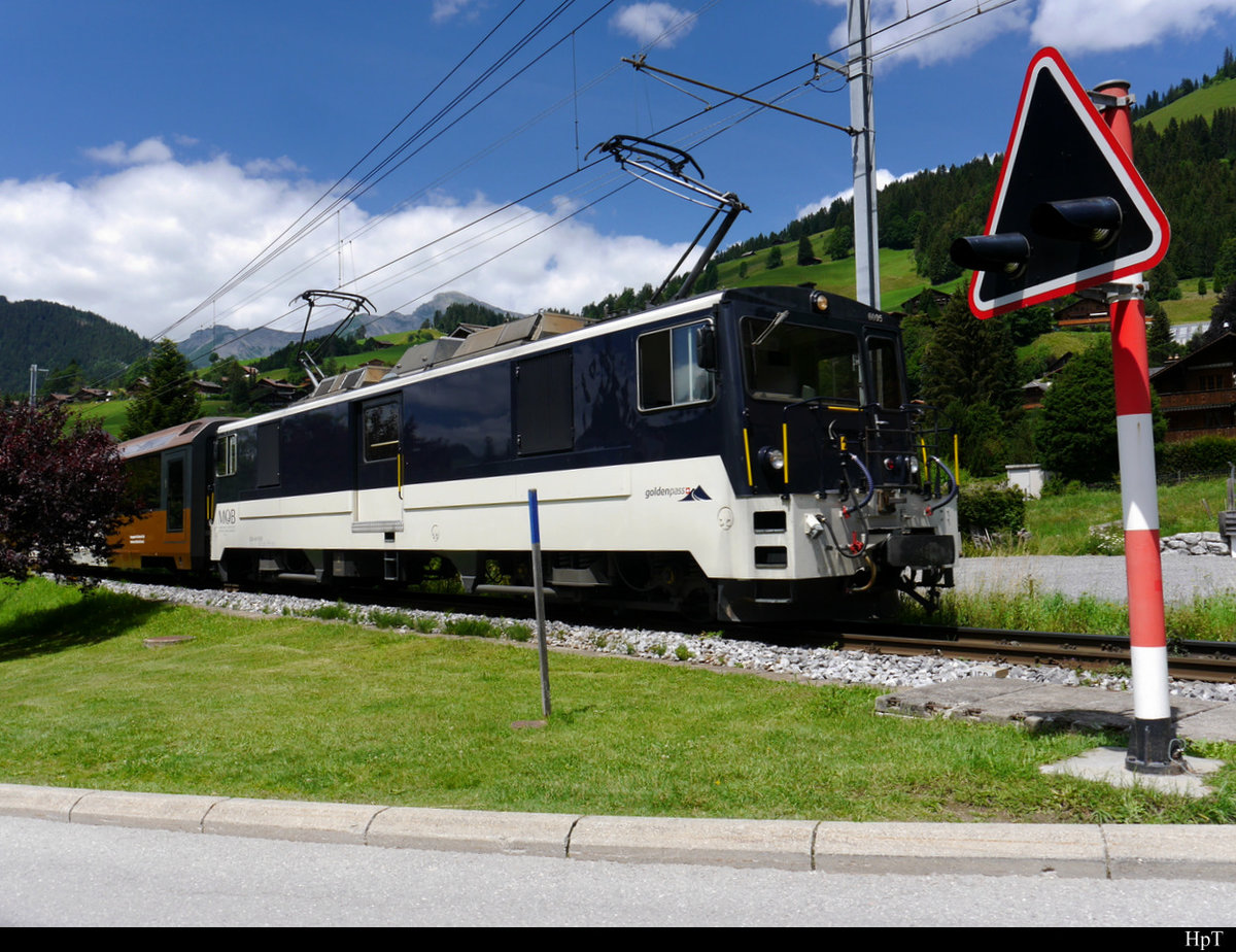 Goldenpass MOB - Lok GDe 4/4 6005 mit Zug bei der einfahrt in den Bahnhof von Rougemont am 04.07.2020