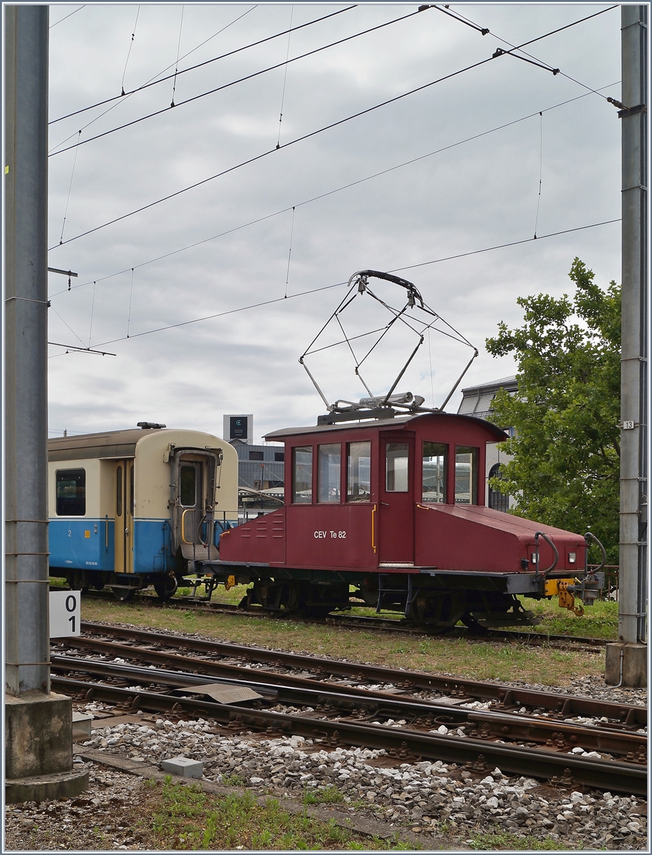 Kaum fotografierbar steht der aufgebügelte CEV Te 2/2 82 mit den MOB B 211 in Vevey. Der MOB B 211 wartet, wie mir Zwischenzeitlich zugetragen wurde, nicht auf die "Zerlegung" sondern mit weiteren Wagen (B 212 - 214, dem AB 308 und dem BD 206) auf die Reise zur Edeis - La Mure Bahn, wo ihr Einsatz ab nächstem Jahr vorgesehen ist.