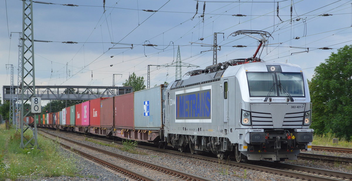 METRANS a.s., Praha [CZ] mit "383 401-7" [NVR-Nummer: 91 54 7383 401-7 CZ-MT] und Containerzug am 03.07.20 Bf. Saarmund.