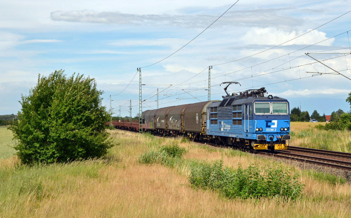 Mit einem gemischten Güterzug am Haken rollt 372 008 am 28.06.20 durch Gräfenhainichen Richtung Bitterfeld.