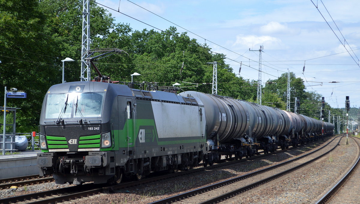 WLC - Wiener Localbahnen Cargo GmbH, Wien [A] mit der ELL Vectron "193 242" [NVR-Nummer: 91 80 6193 242-5 D-ELOC] und Kesselwagenzug am 30.06.20 Bf. Saarmund.