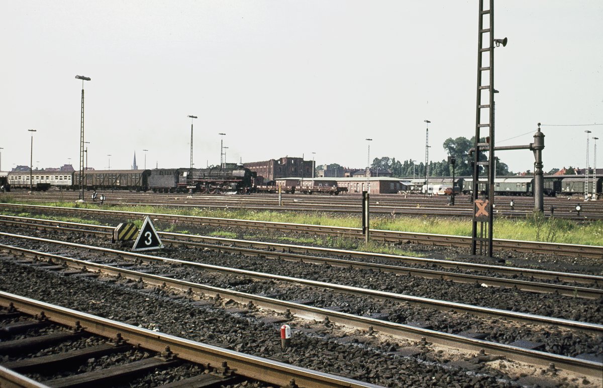 Gemischter Gz mit 185 003-1 DB durchfährt den Hp Zscherben auf der Bahnstrecke Halle–Hann. Münden (KBS 590) Richtung Halle (Saale).