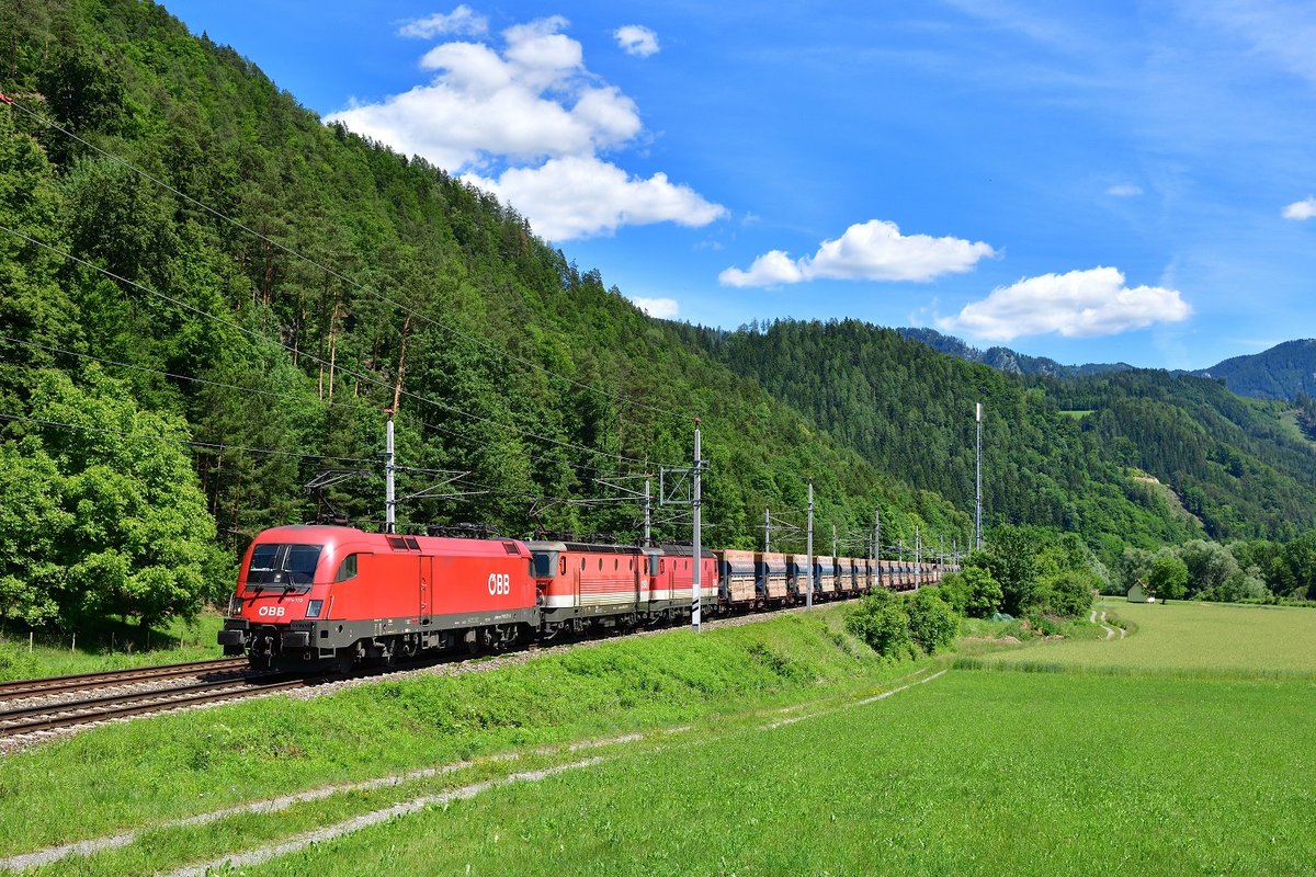 1116 172 und zwei 1144 mit einem Erzzug am 12.06.2020 bei Pernegg.