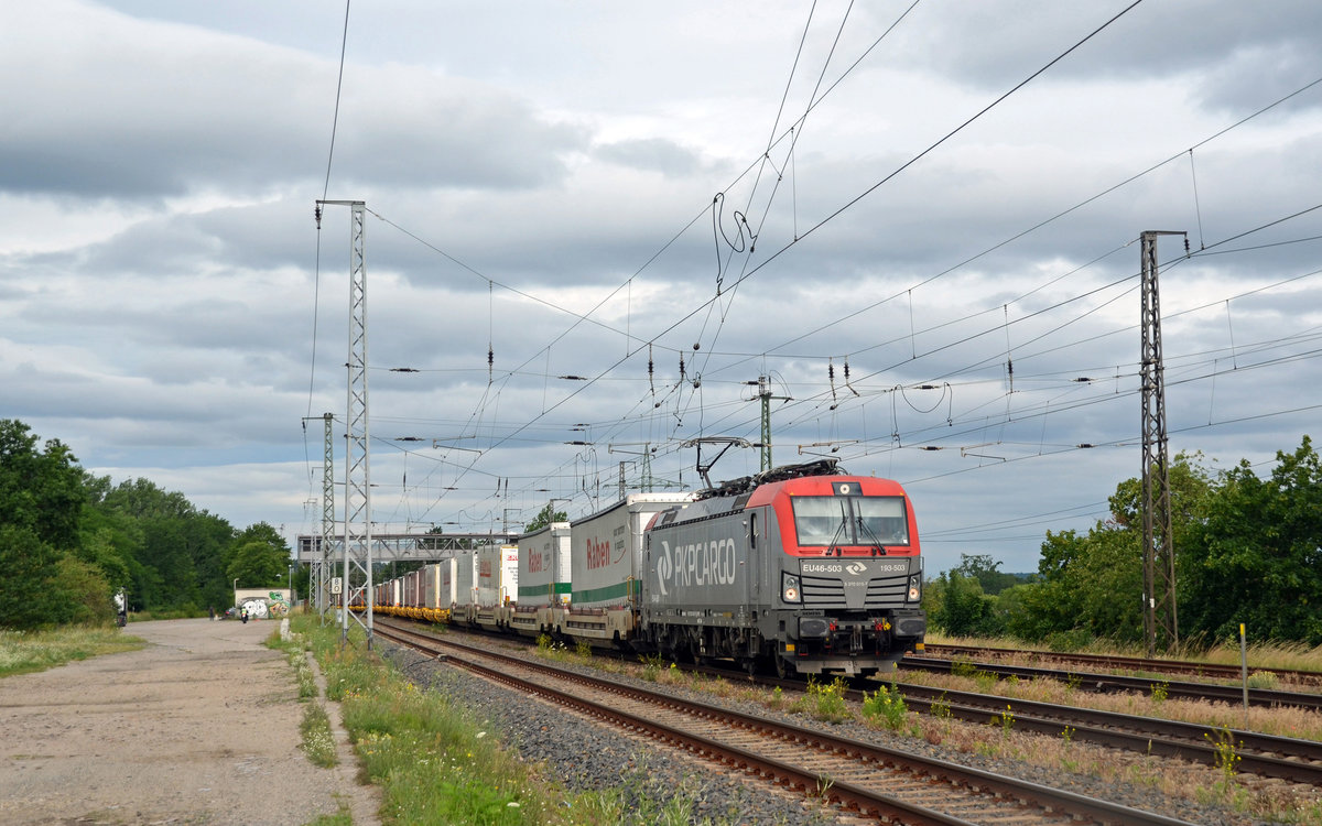 193 204 der SETG führte am 01.07.20 einen Innofreight-Containerzug über´s Gegengleis durch Saarmund Richtung Potsdam.