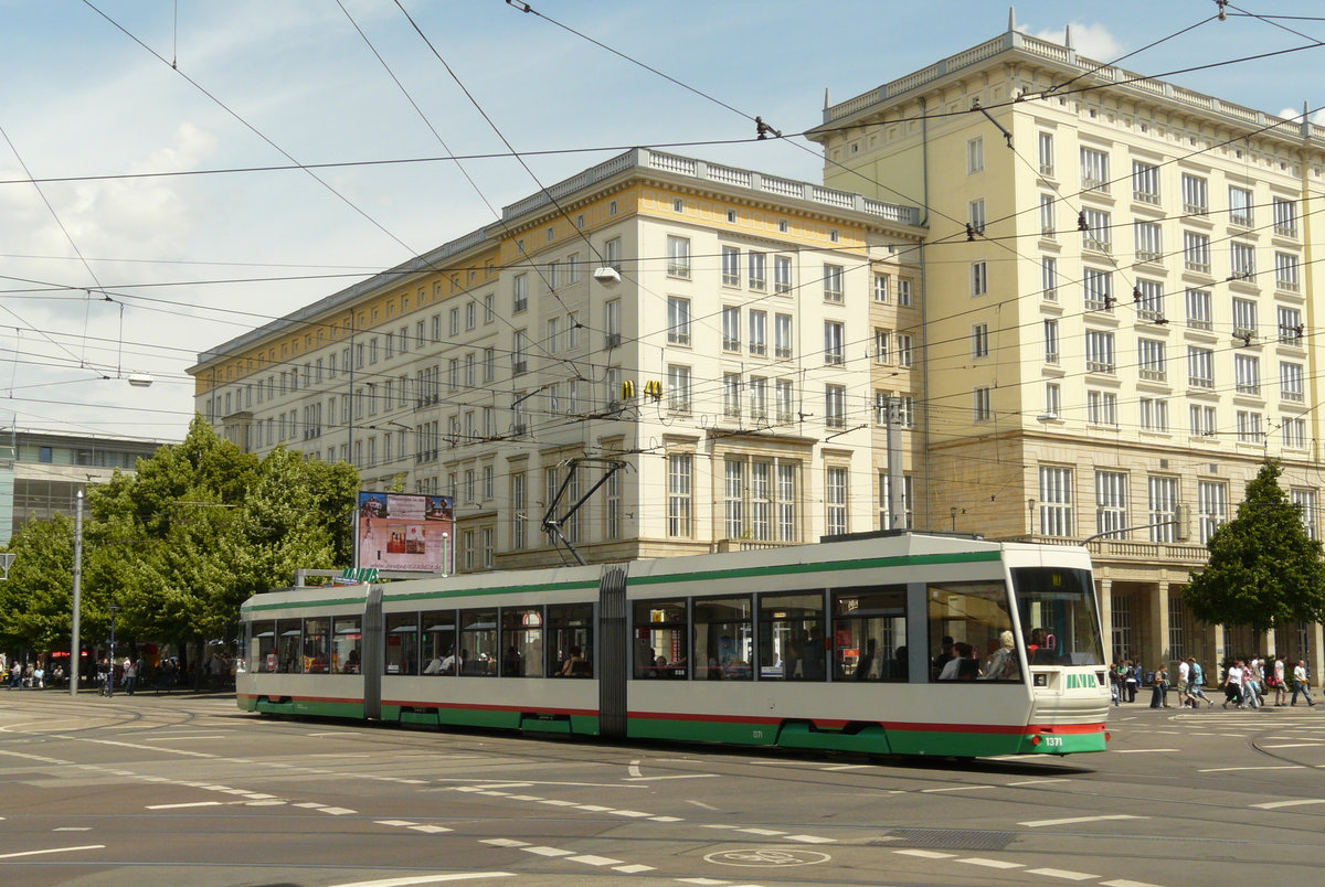 Am 20. Juni 2008 in Magdeburg. In der Fritz-Reuter-Allee begegnete mir der Niederflurtriebwagen NGT 8D Nr.1371, hergestellt bei Bobardier in Bautzen