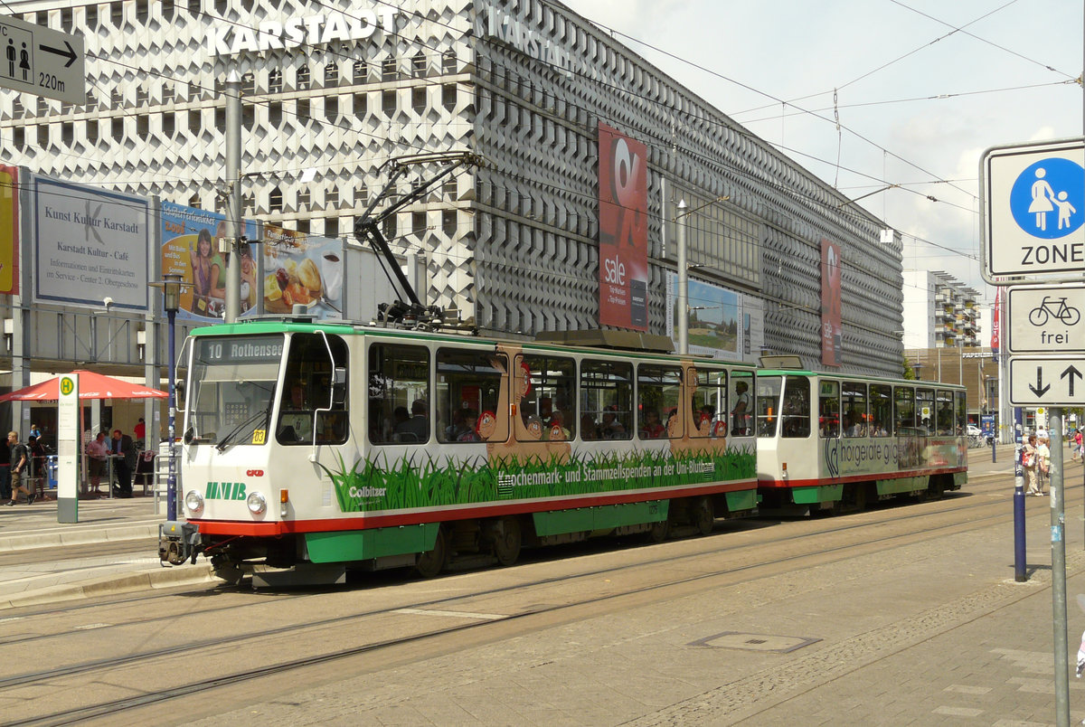 Am 20. Juni in Magdeburg. Auf der Fritz-Reuter-Allee sah ich diesen Tatra-Triebwagen T6A2 Bj. 1989 von CKD Praha Nr. 1275 mit einem typgerechten Beiwagen. Tagesaktuelle Schlussfrage: Was ist hier nostalgischer - der Tatra-Zug oder das Karstadt-Warenhaus?