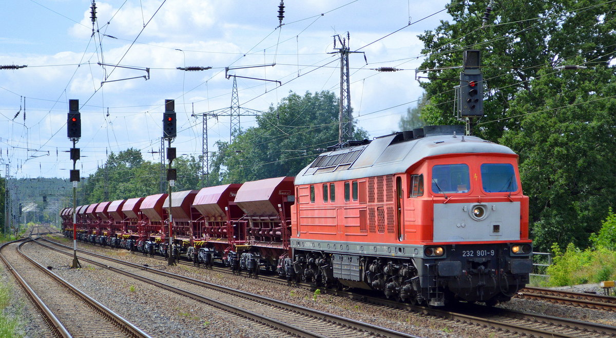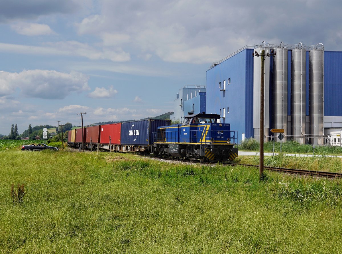 Sonntags ist "Henkel"-Zeit auf der Riesbahn und auf der fränkischen Alb. An diesem Wochentag fährt der DGS 59940 von Wassertrüdingen nach Langenfeld nämlich über Donauwörth, anstatt den direkten Weg über die Nebenbahn nach Gunzenhausen zu nehmen. Hintergrund ist die Wochenendruhe auf dieser Strecke. Am 01. Juni 2020 beförderte die 151 119 der BayernBahn den mit Haarpflegeprodukten beladenen Güterzug ins Rheinland und konnte konnte bei Ebermegen mit dem Harburger Zementwerk im Hintergrund fotografiert werden.