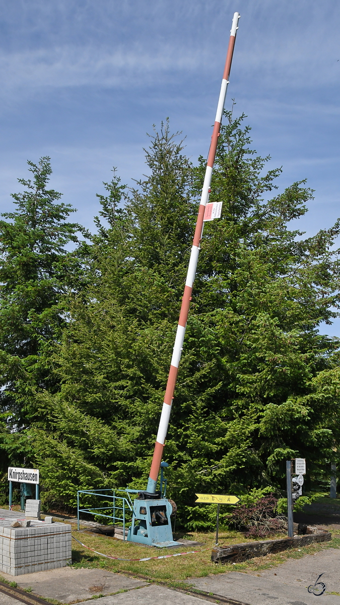 Die an der Bahnstrecke Halle–Hann. Münden (KBS 590) befindliche Anrufschranke in Zscherben, Angersdorfer Straße, soll laut der Zscherbener Bevölkerung noch im Laufe dieses Monats ersatzlos abgebaut werden. Daher habe ich kürzlich Erinnerungsfotos dieses Bahnübergangs gemacht.