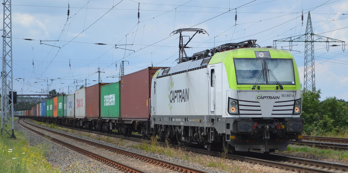 Mit einem Containerzug am Haken fuhr 193 560 am 01.07.20 durch Saarmund Richtung Potsdam.