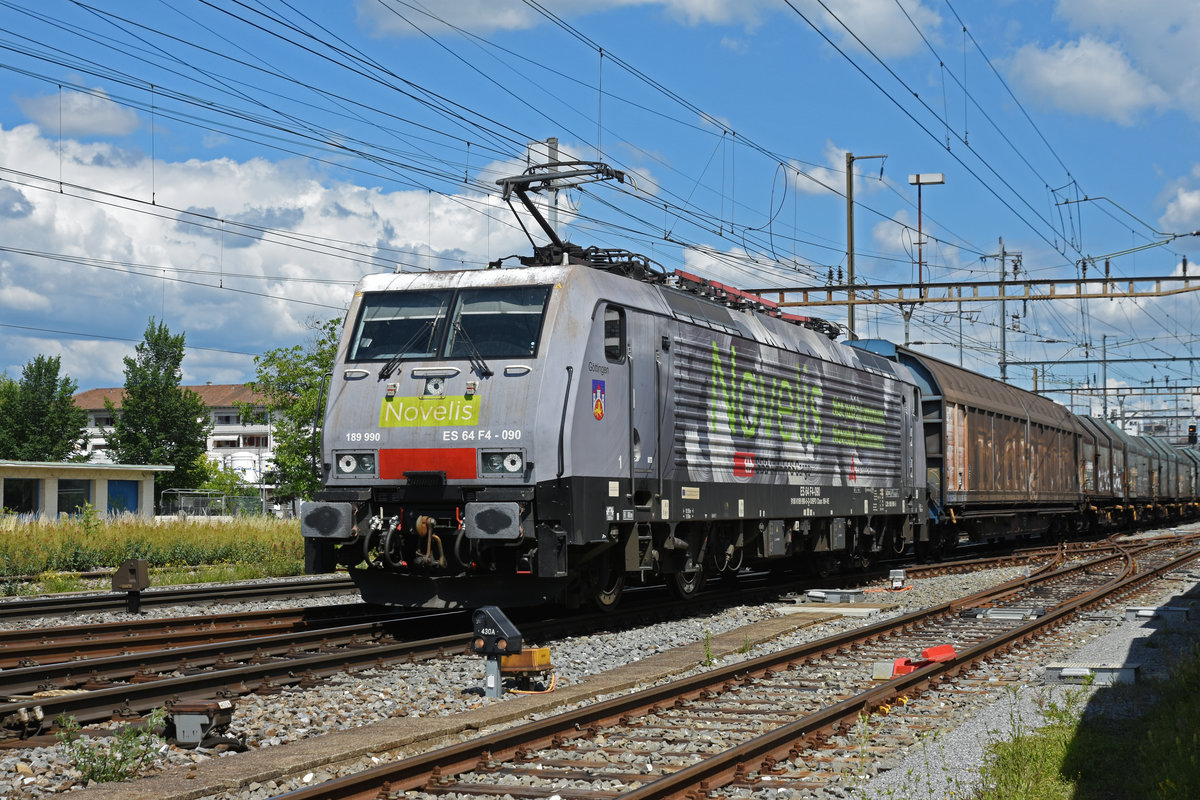 Lok 189 990-5 "Novelis" durchfährt den Bahnhof Pratteln. Die Aufnahme stammt vom 22.06.2020.