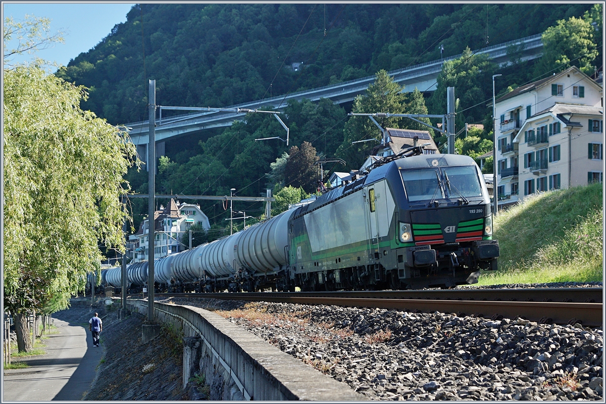 Mit dem DGS 43821 von Bremen nach Verona Q.E. war am 13. Juni 2020 die von MRCE angemietete 193 657 unterwegs. Die Lokomotion-Leistung konnte ich bei Niederaudorf im Inntal fotografieren.