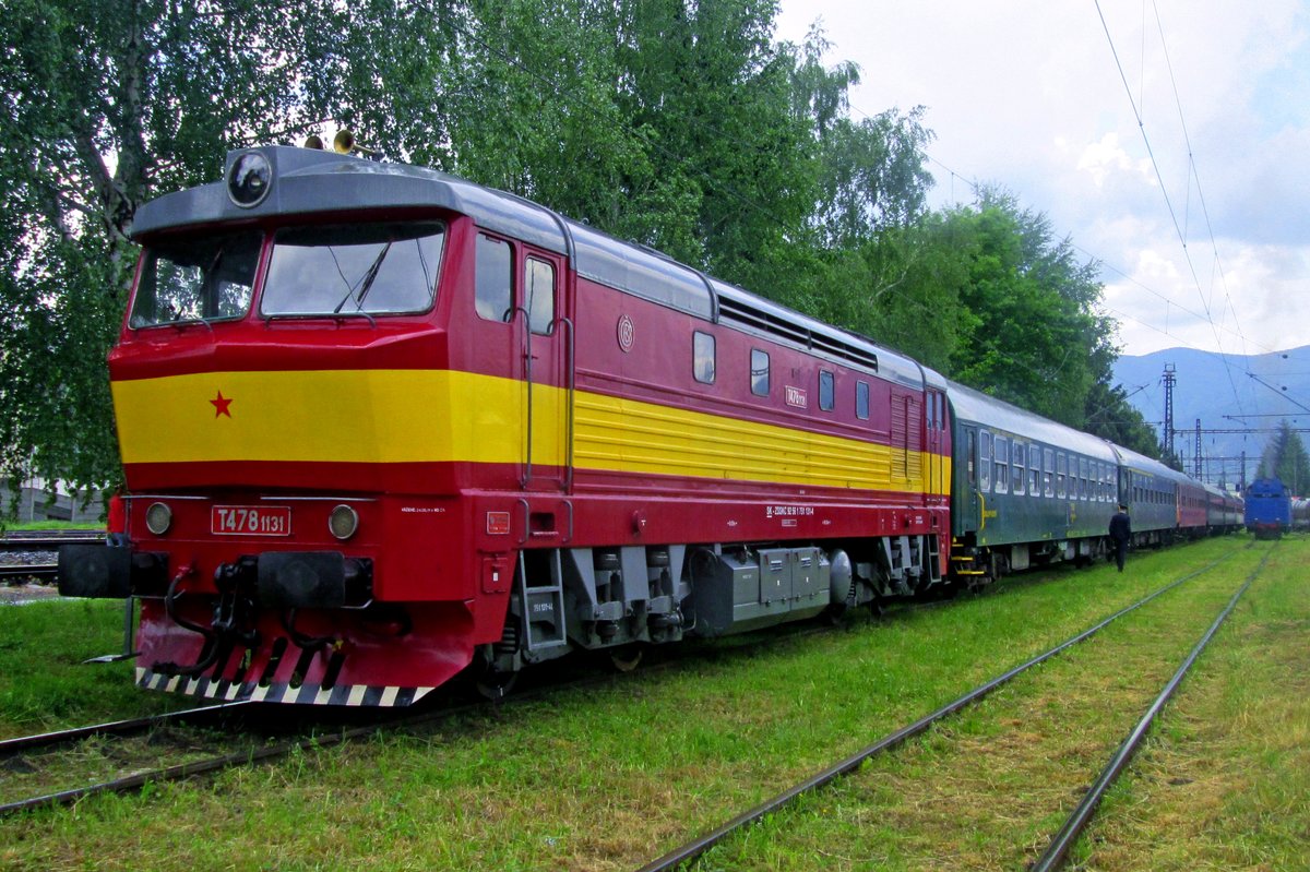 T478-1131 steht mit ein Sonderzug in Vrutky Nakladi Stanica am 30 Mai 2015. Jedes letzten Wochenend hat das ZSSK Bw Vrutky Nakladi Stanica ein tolles Offener Wochenend und dass bringt ü.A. auch einige Sonderzüge ins vrutky.