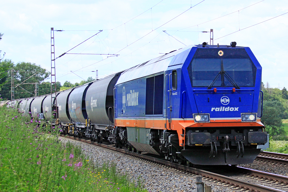 Die 185 536 von Widmer Rail Service konnte am 01. Juni 2020 bei Dietfurt im Altmühltal mit einem Kesselwagenzug beobachtet werden.