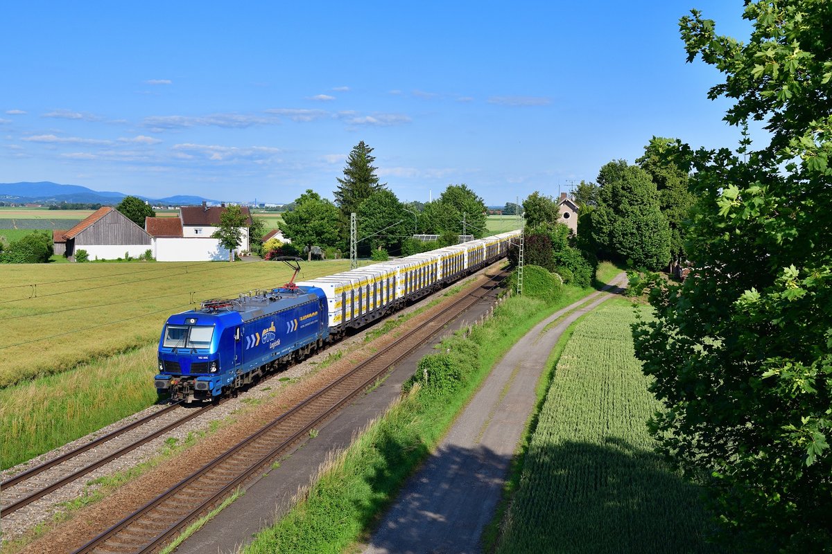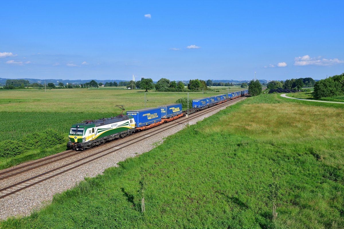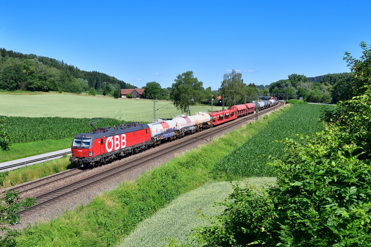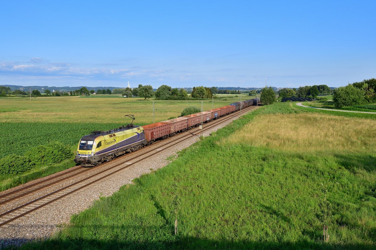 Immer wieder gern von mir aufgesucht wird der Blick über das Inntal und den Heuberg bei Kirnstein. Am 13. Juni 2020 konnte ich dort die 193 776 mit dem komplett beladenen DGS 43119 von München Ost Rbf nach Verona Q.E. fotografieren.