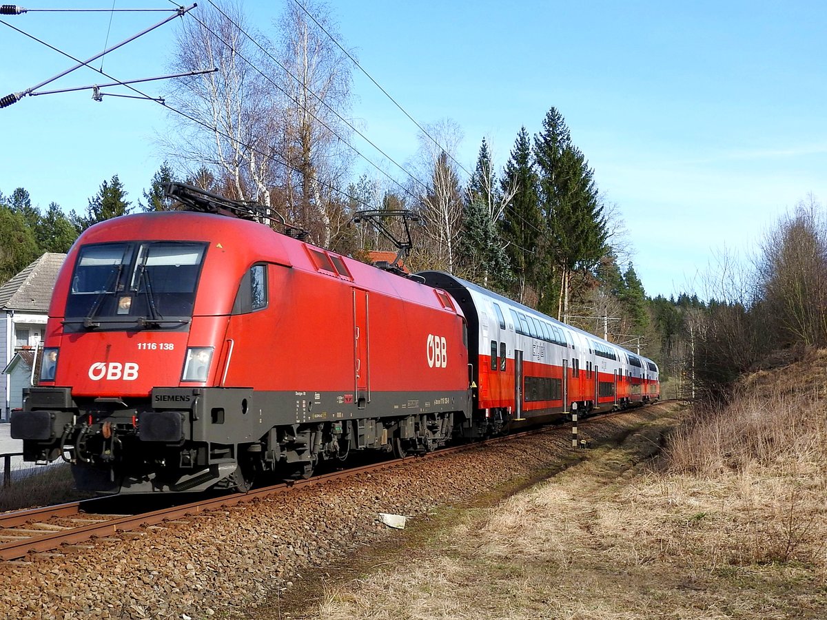 Ich wählte hier den Nachschuss, da der Zug auf dem fototechnisch günstigen Gleis fuhr, der gehobene Stromabnehmer dabei aufs Bild kam und der  Nachschuss  von der Spitzen/Schlussbeleuchtung kaum auffällt.