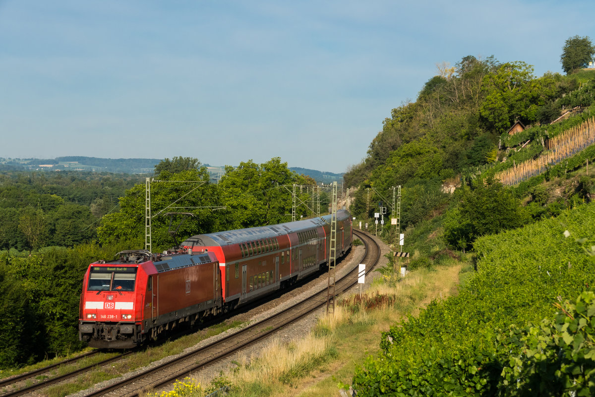 146 238 -1 mit RB 17159 Freiburg - Basel bei Efringen - Kirchen. 13.07.2020