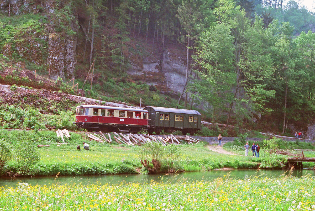 Dampfbahn Fränkische Schweiz, Am 01. Mai 1988 ahnte der  Gläserne Zug  noch nichts von seinem baldigen Ende. Heute kam er mit Diesel-Power im Rahmen einer seiner beliebten Sonderfahrten auf die Strecke der DFS.