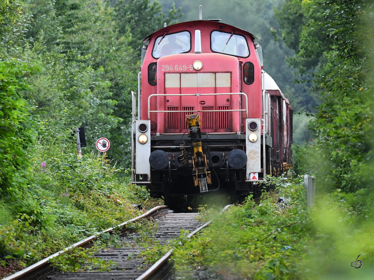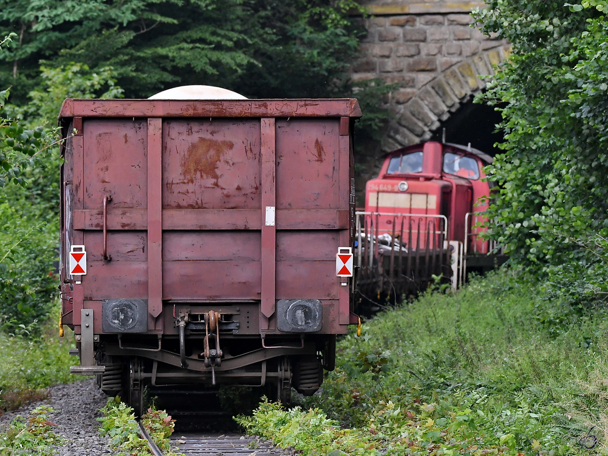 Mit einer kurzen Übergabe rollt 298 327 am 01.07.20 durch Saarmund Richtung Seddin.