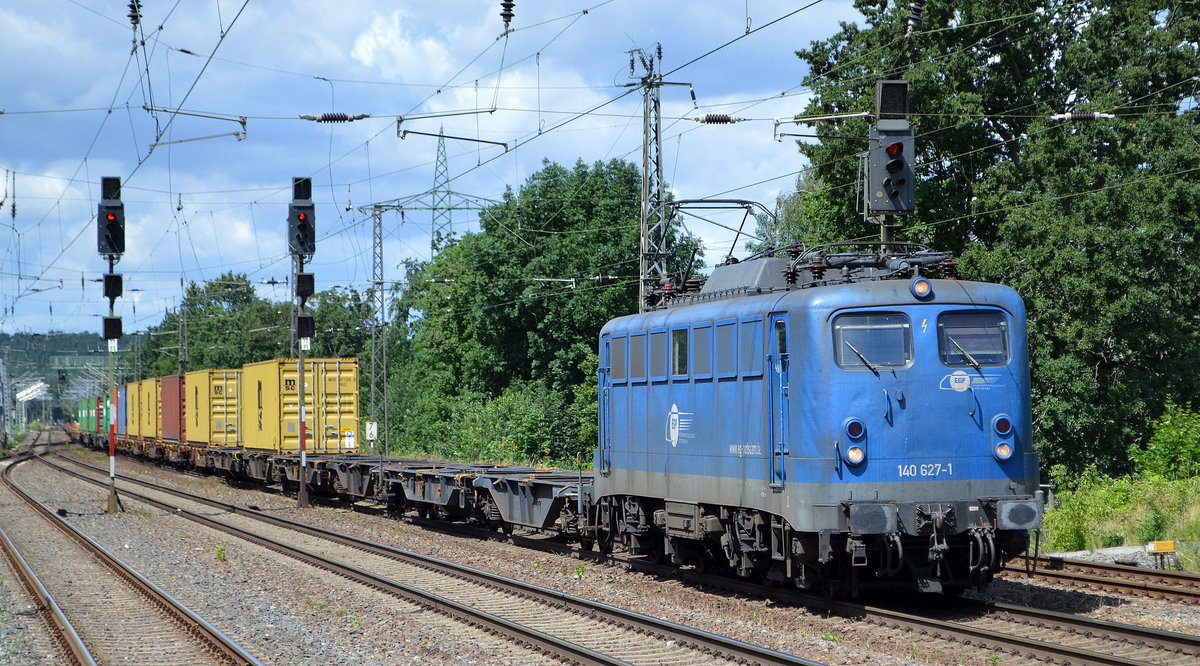LTE 186 944 zieht der Rzepin-KLV durch Valburg CUP am 12 Juli 2020.