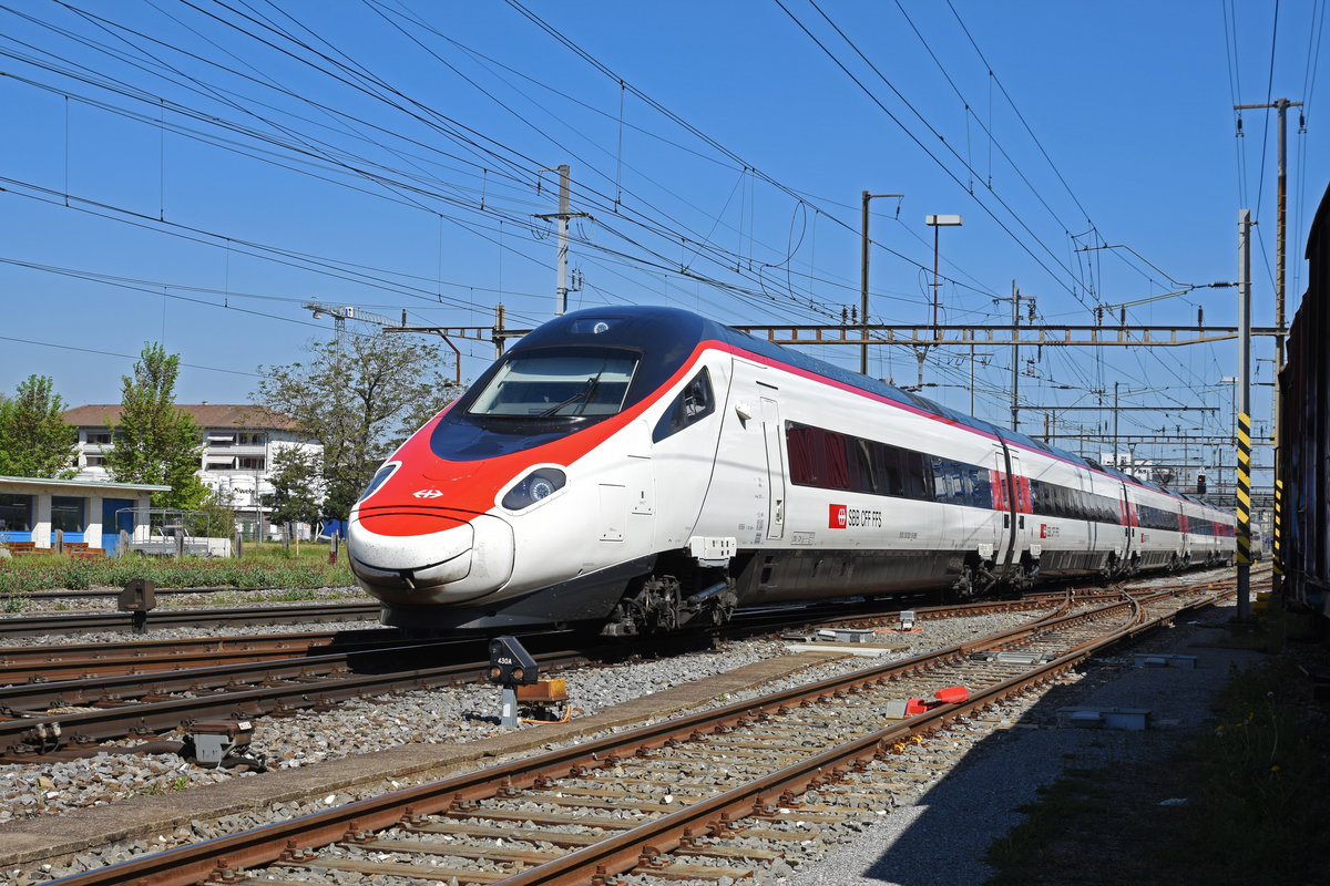 ETR 610 durchfährt den Bahnhof Pratteln. Die Aufnahme stammt vom 23.04.2020.