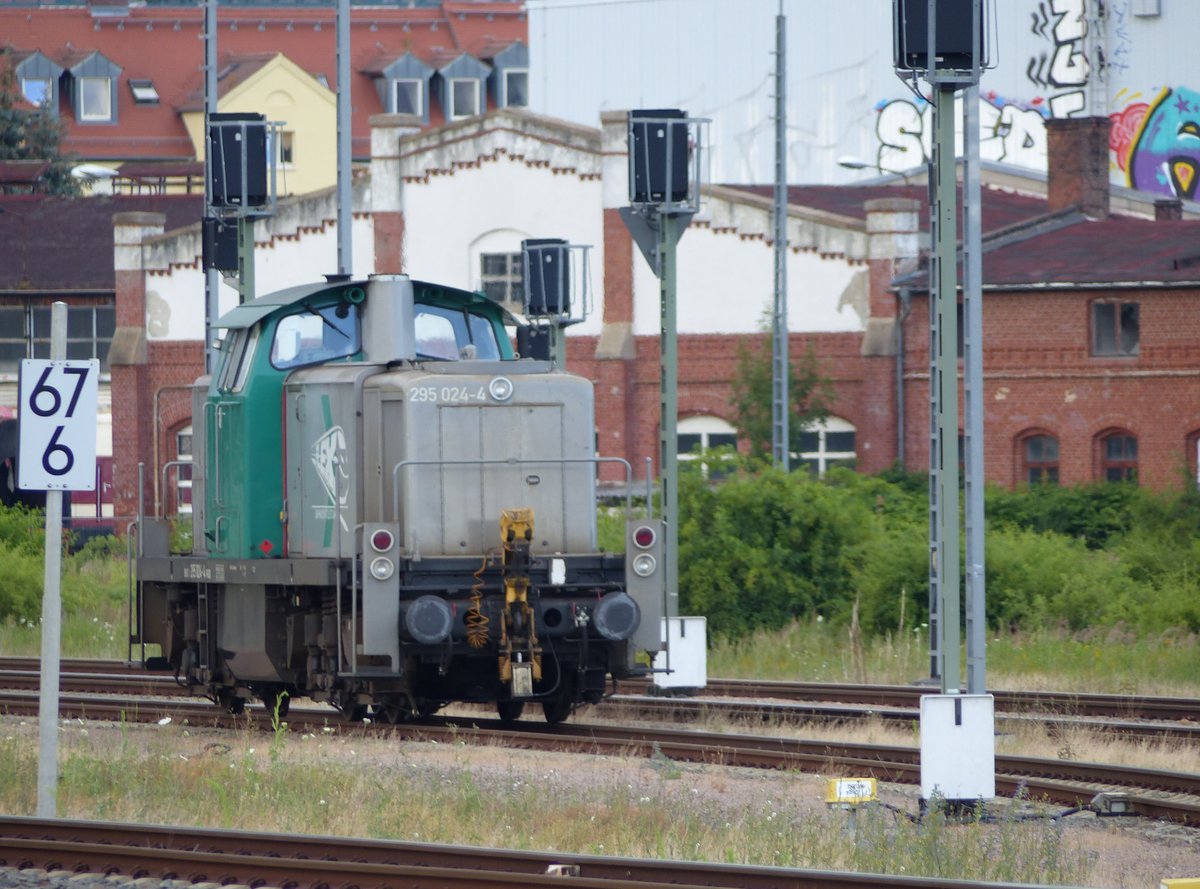 FLEX Bahndienstleistungs GmbH mit 2 Mak G 1600 BB, 295 006-1 ( 9880 3295 006-1 D-FLEX ) und 295 024-4 ( 9880 3295 024-4 D-FLEX ), von Gera in Richtung Leipzig am 8.7.2020
