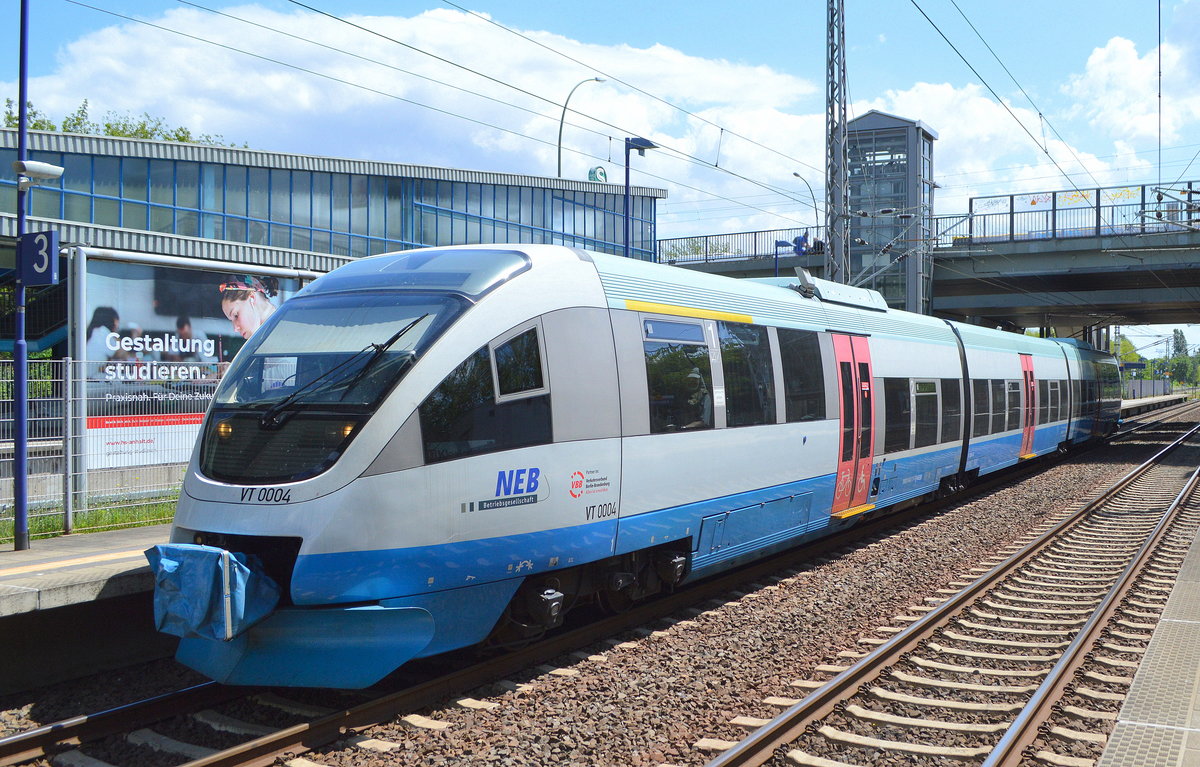 Arriva / Norddeutsche Eisenbahngesellschaft (NEG): Auf der NEG-Bahnstrecke Niebüll - Tønder / Tondern (DK) fahren dänische Arriva-LINT 41. Auf dem Foto sieht man im DB-Bahnhof Niebüll den LINT AR1016, der kurz vorher von Esbjerg (DK) angekommen ist.