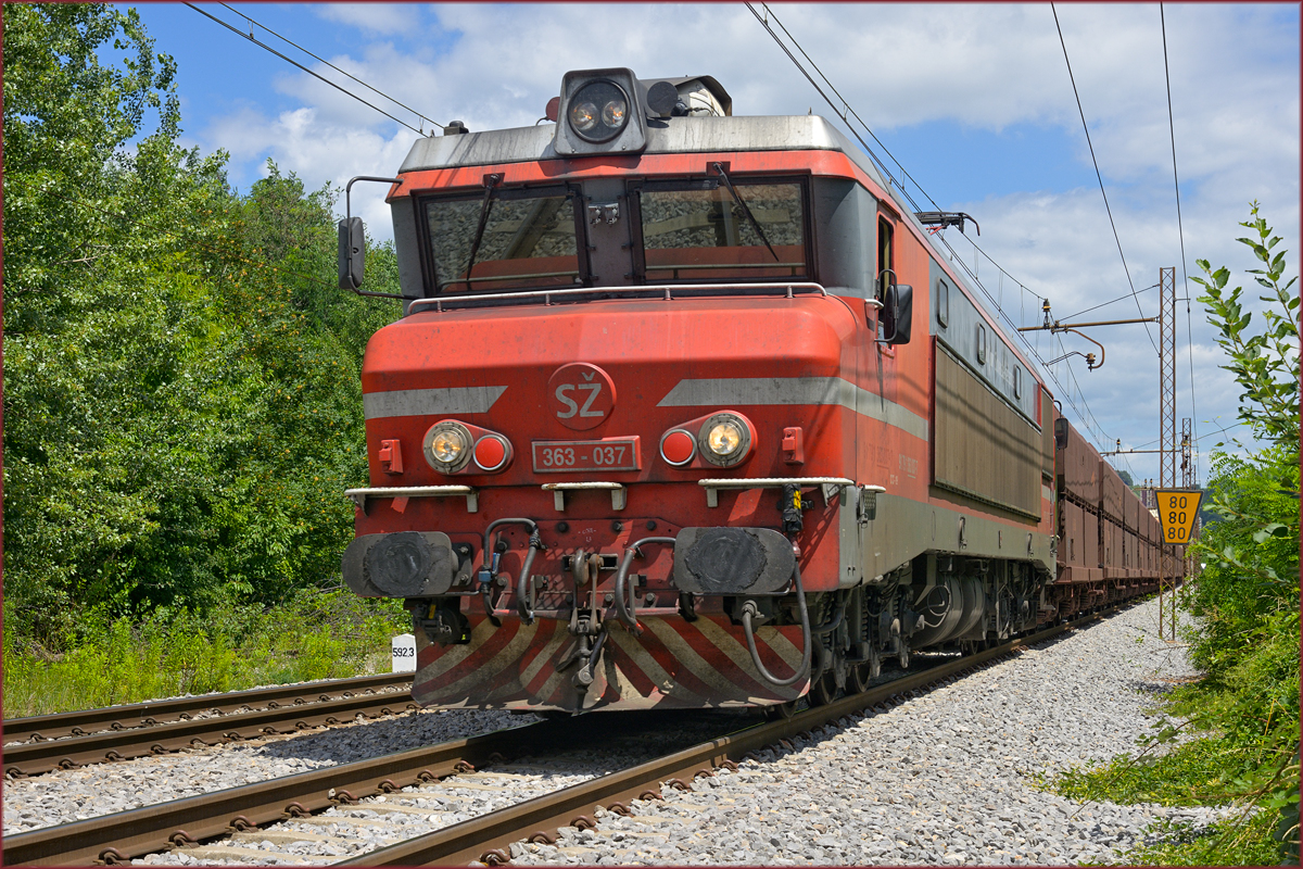 SŽ 363-037 zieht leeren Erzzug durch Maribor-Tabor Richtung Koper Hafen. /7.7.2020