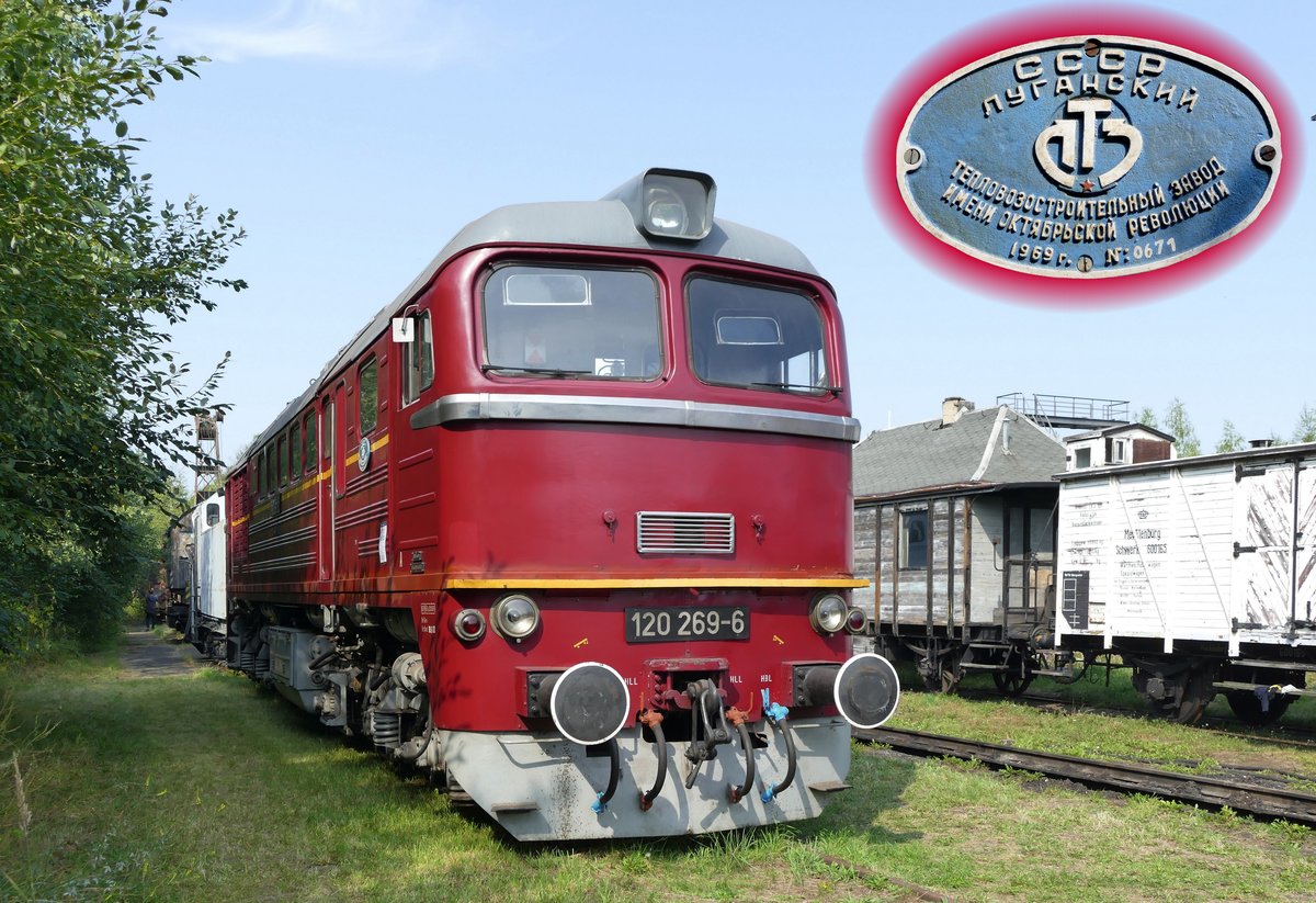 24. August 2019, Heizhausfest im Bw Chemnitz-Hilbersdorf. Auch Lok 120 269 wurde aus dem Schuppen geholt. Das originale Herstellerschild war mir ein eigenes Foto wert.