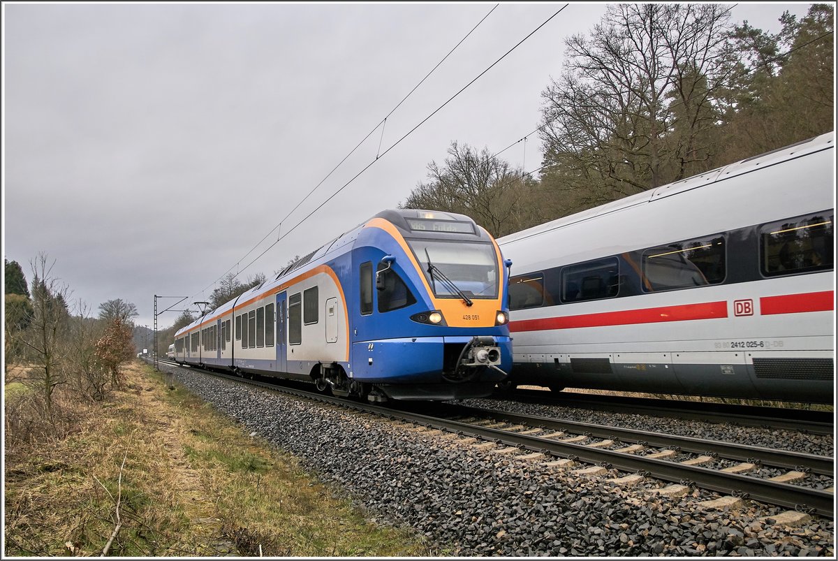 12. Oktober 2017, Die größte Steigung der Frankenwaldbahn liegt auf der südlichen Seite zwischen Pressig-Rothenkirchen und Steinbach am Wald. Seit dem Fahrplanwechsel im Dezember verkehren hier keine ICE mehr. Anlass für mich, heute noch ein paar Fotos zu schießen. Für ICE Naumburg (Saale) (Tz 1110) als ICE 1510 München - Berlin ist es hier bis zum Scheitelpunkt nicht mehr weit.