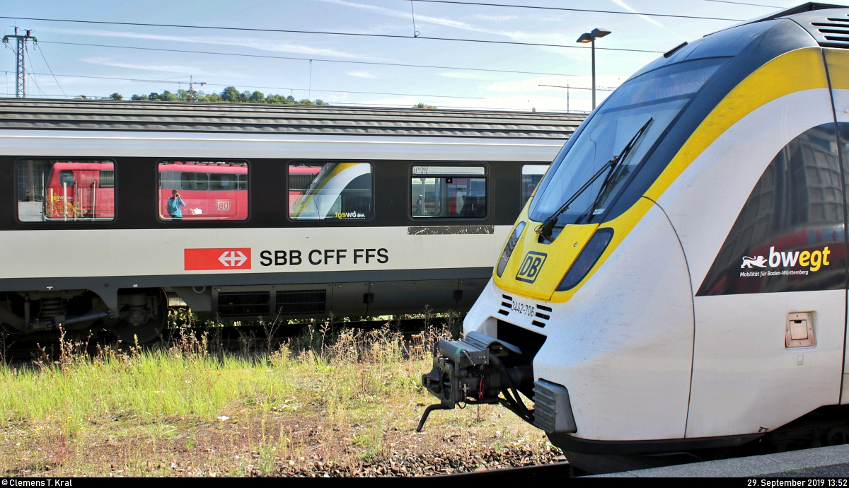 Währenddessen erreichen 3442 211 und 3442 706 (Bombardier Talent 2) von DB Regio Baden-Württemberg als RE 17652 (RE14a) von Rottweil das Gleis 4.