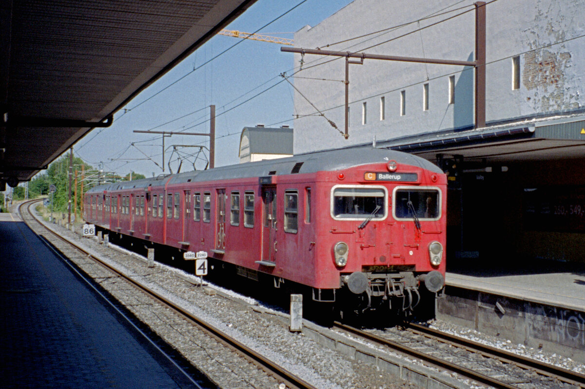 DSB S-Bahn Kopenhagen: Eine Garnitur der zweiten S-Bahnwagengeneration auf der Linie C, die eben dabei war, den Bahnhof Valby in Richtung Ballerup zu verlassen, konnte ich am 4. Juli 2006 knipsen. - Scan eines Farbnegativs. Film: Agfa XRG-N. Kamera: Leica C2.