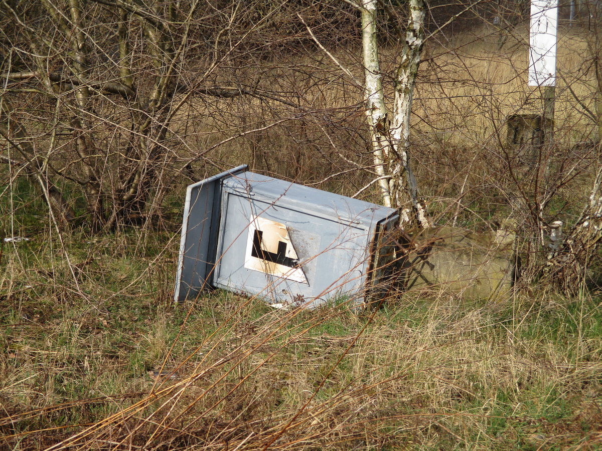 Ausgedient hat dieser Fernsprecher auf dem Bahnhof Lübz.Aufgenommen am 22.Februar 2020.
