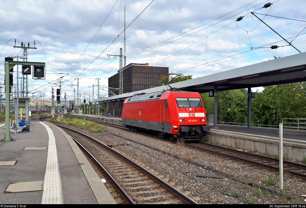 Nachschuss auf 101 127-9, die von Gleis 15 in die Abstellgruppe von Stuttgart Hbf fährt.