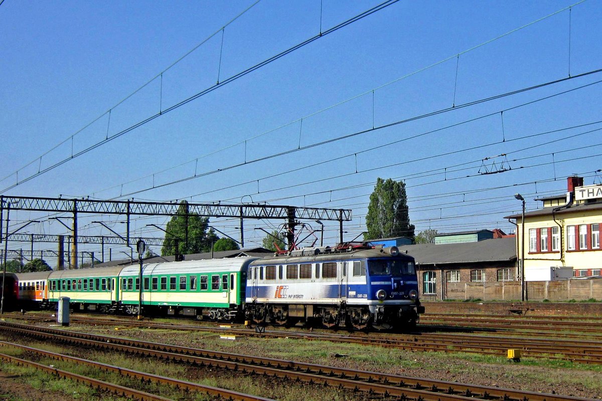 26. April 2019 in Kuty: 380 001-8 kommt mit einem EC im Bahnhof an. Rechts daneben der "slowakische Elefant" ;-)