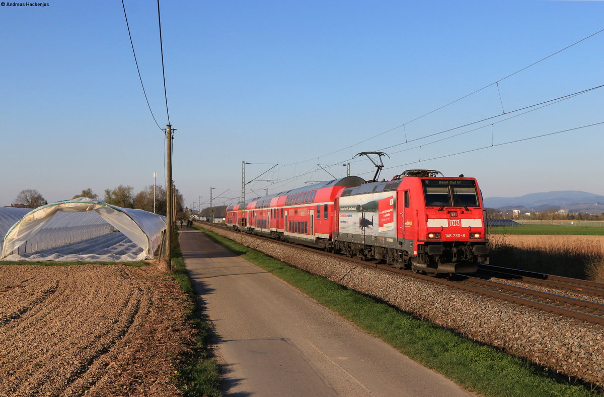 146 236-5  Schwarzwaldbahn Erlebnispfad/Triberg   mit dem RE 5345 (Offenburg-Basel Bad Bf) bei Niederschopfheim 24.3.20