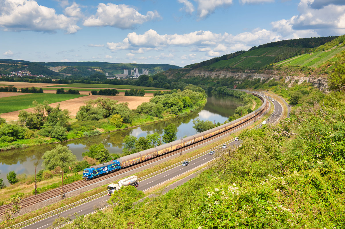 Mit dem "MAGETRA"-Containerzug aus Belgien fuhr am Nachmittag des 07.05.2019 die MRCE/XRAIL ES 64 U2-071 (182 571-0) "CROSSRAIL", welche den Zug seit Aachen West bespannte, nördlich von Müllheim (Baden) über die KBS 703 durchs Markgräflerland in Richtung Schweiz, wo sie ihren Zug an die BLS Cargo übergeben wird.