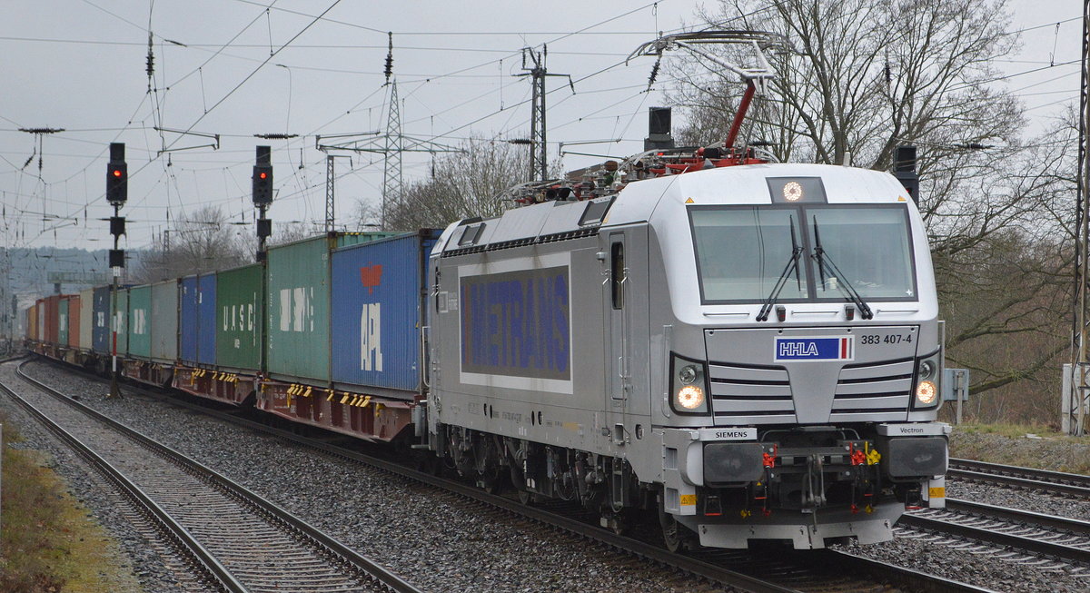METRANS a.s., Praha [CZ] "383 407-4" [NVR-Nummer: 91 54 7383 407-4 CZ-MT] mit Containerzug am 03.03.20 Bf. Saarmund.