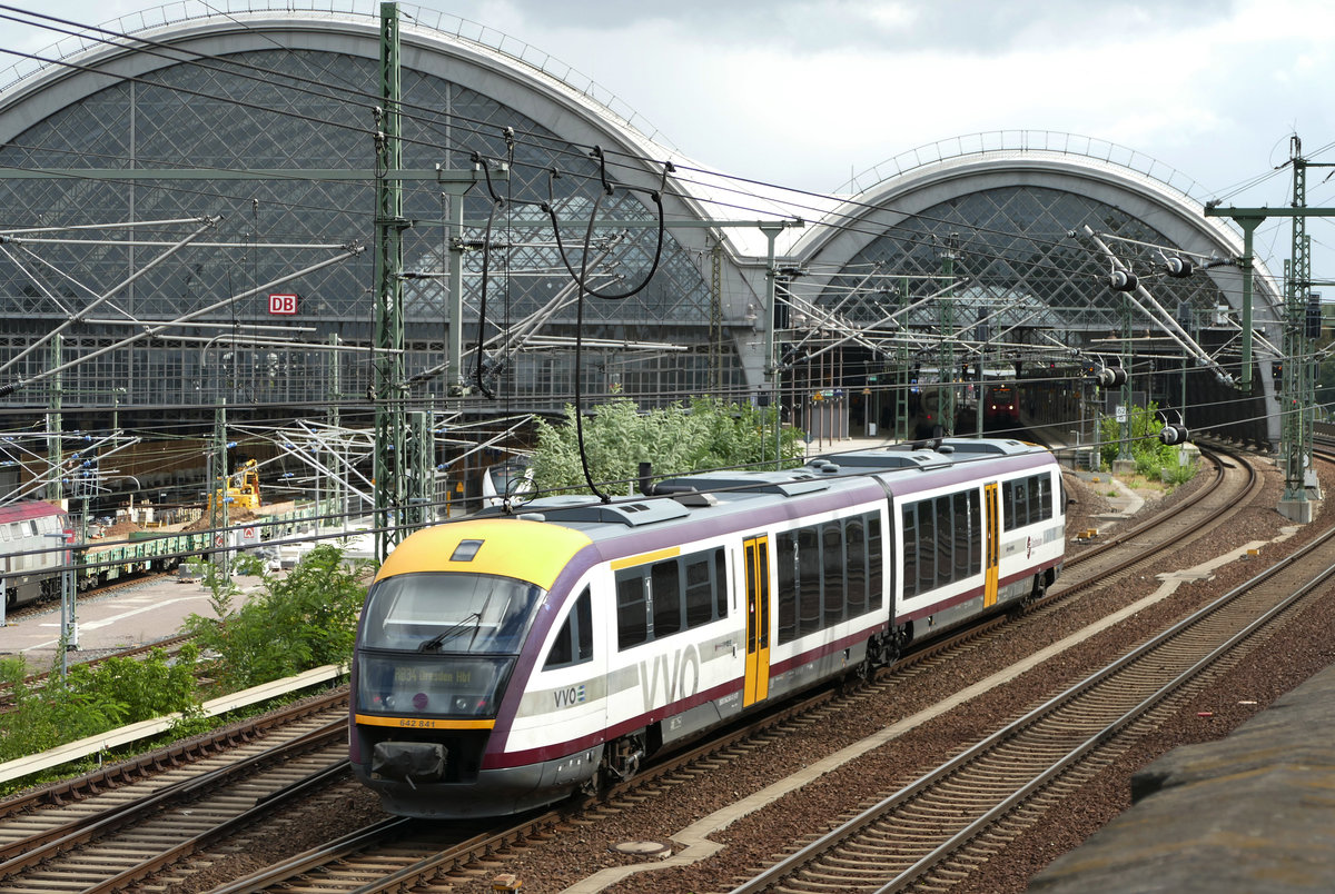 13. Juni 2018, Dresden-Hauptbahnhof. Die Tw 642 318, 326 und 321 bilden einen Zug nach Görlitz und Liberec.