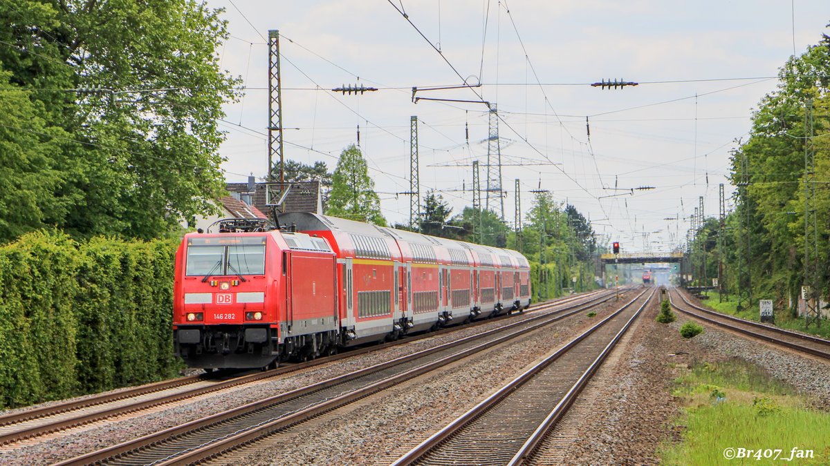 Die Elektrolokomotive 146 260 zog Anfang Mai 2020 einen Regionalzug durch Bochum.