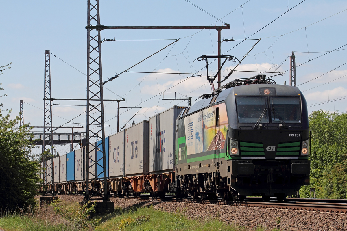 LTE Logistik- und Transport GmbH, Graz [A] mit der ELL Vectron "193 729" [NVR-Numer: 91 80 6193 729-1 D-ELOC] aus Poznan (Polen) Richtung Rotterdam am 26.05.20 Bf. Saarmund.