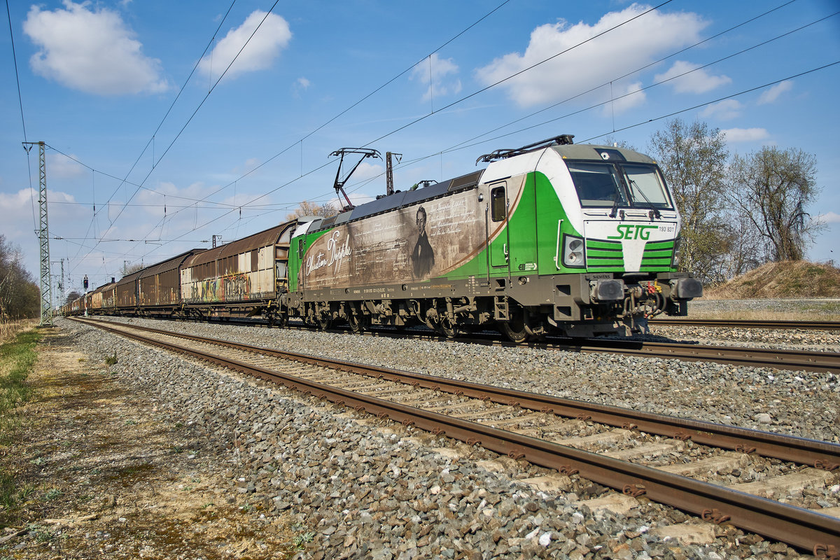 Im Frühjahr 2020 war mein Aktionsradius aufgrund der Ausgangssperren auf wenige Kilometer beschränkt. Eine der wenigen verbleibenden Möglichkeiten, um Eisenbahnbilder anzufertigen, war somit der Bahnhof München Süd. Dort fuhr mir am 15. April 2020 zum dritten Mal in Folge der Beethoven Vectron der SETG mit dem DGS 49876 nach Schwedt an der Oder vor die Linse. Daher wählte ich diese Motivvariation, um nicht drei gleichartige Bilder von der schön gestalteten Lok zu haben.