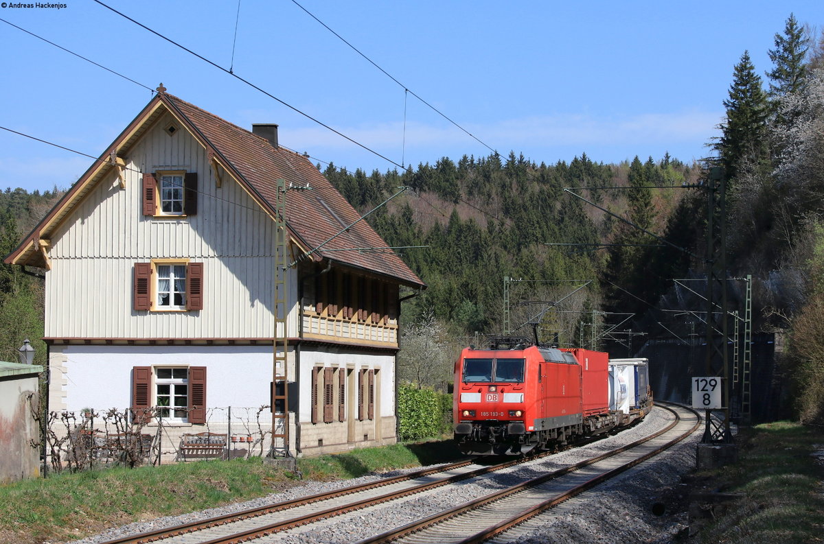 DB Cargo 193 313 und 324 mit Tonerdezug Limburg - Reggio Emilia am 7. Mai 2020 bei Uttigen.
