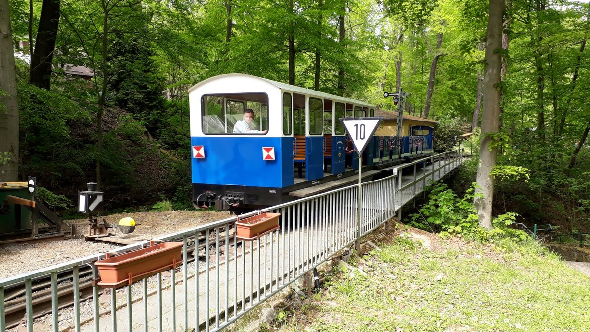 Corona bedingt verkehrte die Parkeisenbahn Gera am 09.05.2020 mit Fahrgästen nur vom Bf Wolfsgehege zum Bf Martinsgrund. Zurück wurde der Zug ohne Fahrgäste geschoben.