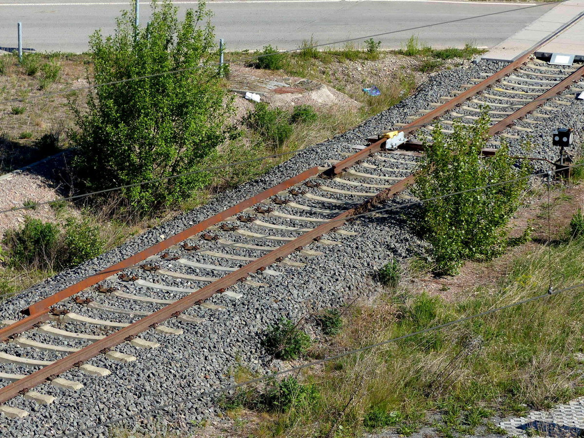 Spurensuche unweit der Haustür: Die ehemalige Zementfabrik in Halle-Nietleben besaß einen Eisenbahnanschluss über die nun stillgelegte Bahnstrecke Halle Klaustor–Hettstedt (Halle-Hettstedter Eisenbahn (HHE) | 6800), ausgehend vom Bahnhof Halle-Nietleben. Dieser diente v.a. dem Transport von Braunkohle aus der Grube Neuglück (heutiger Heidesee), um den Betrieb der Zementfabrik zu gewährleisten. Mit der Einstellung der Zementproduktion im Jahr 1973 verlor auch die Anschlussbahn ihre Bedeutung. Einzelne Gleisabschnitte bzw. Relikte sind heute noch vorhanden. Ein paar Schritte weiter lässt sich das Streckengleis deutlich besser erkennen. Es verläuft nun einige Hundert Meter parallel zum Heidesee und ist vom links im Bild angedeuteten Fußweg kaum zu übersehen. Als Kind bin ich hier immer sehr gerne auf den Schwellen spaziert. [7.5.2020 | 12:39 Uhr] Weitere Informationen zum Zementwerk: http://www.nietlebener-heimatverein.de/pool/20110313_sn_Zement_kam_einst_aus_Nietleben.pdf