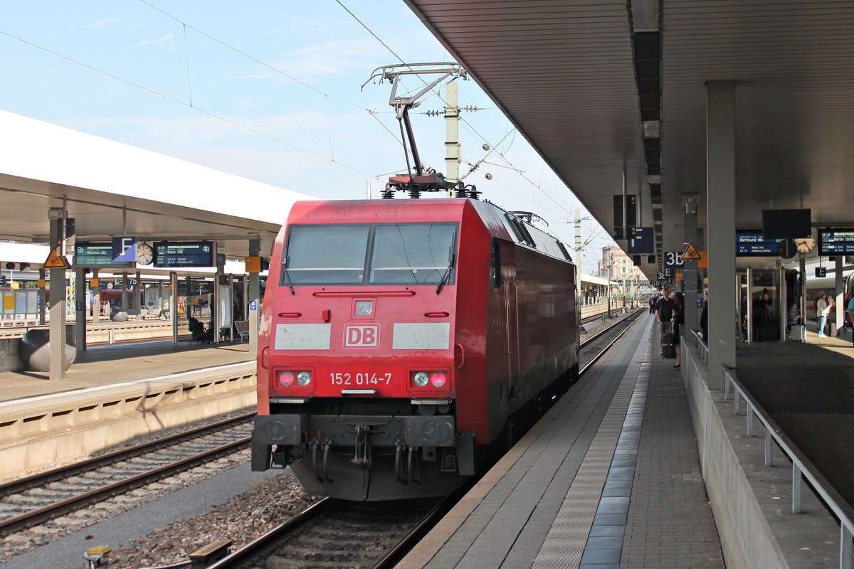 Nachschuss auf 152 014-7, als diese am Morgen des 22.06.2019 als Lokzug (Mannheim Rbf - Ludwigshafen BASF Ubf) durch den Hauptbahnhof von Mannheim gen Rheinbrücke fuhr.