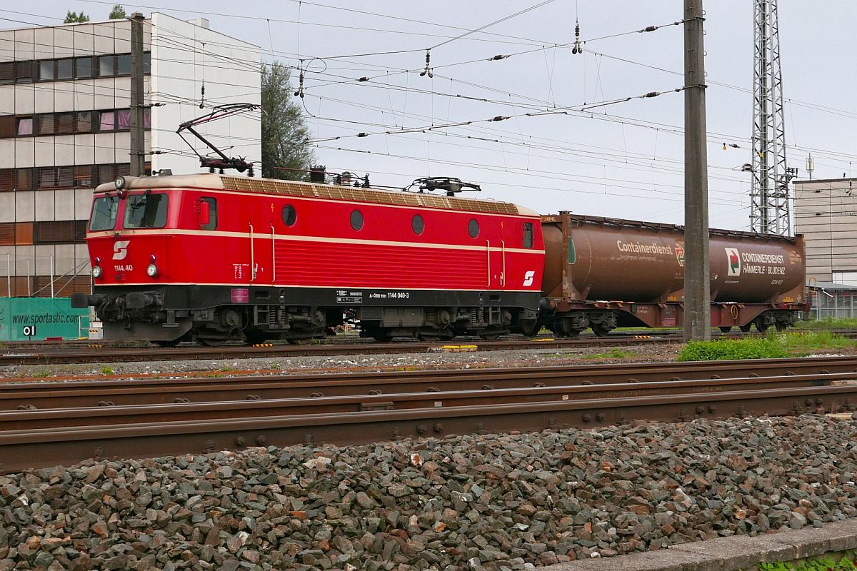 Einzelwagenverkehr - 1144 040 am 11.09.2020 bei der Ausfahrt aus dem Containerterminal Wolfurt in Richtung Dornbirn.