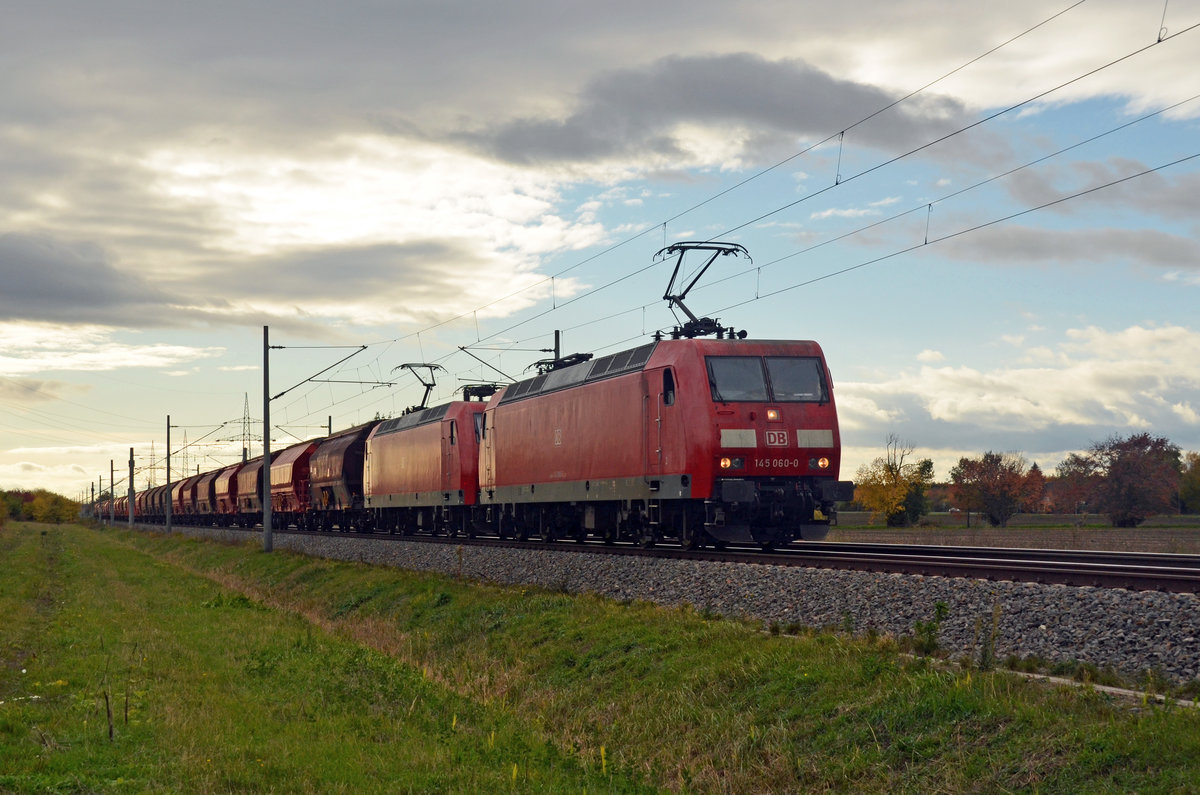 Zusammen mit 145 053 führte 145 060 einen Kalizug am 28.10.20 durch Braschwitz Richtung Köthen.